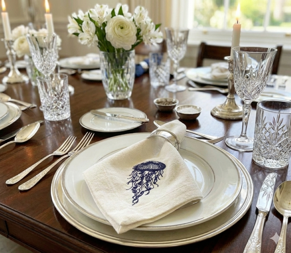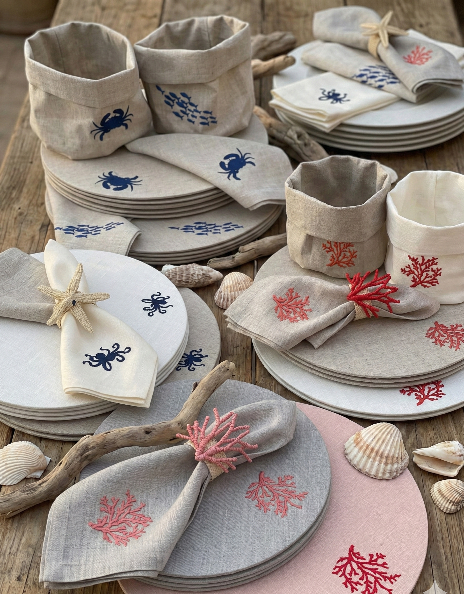 The art of framing the plate. Pure linen defined by intricate artisanal